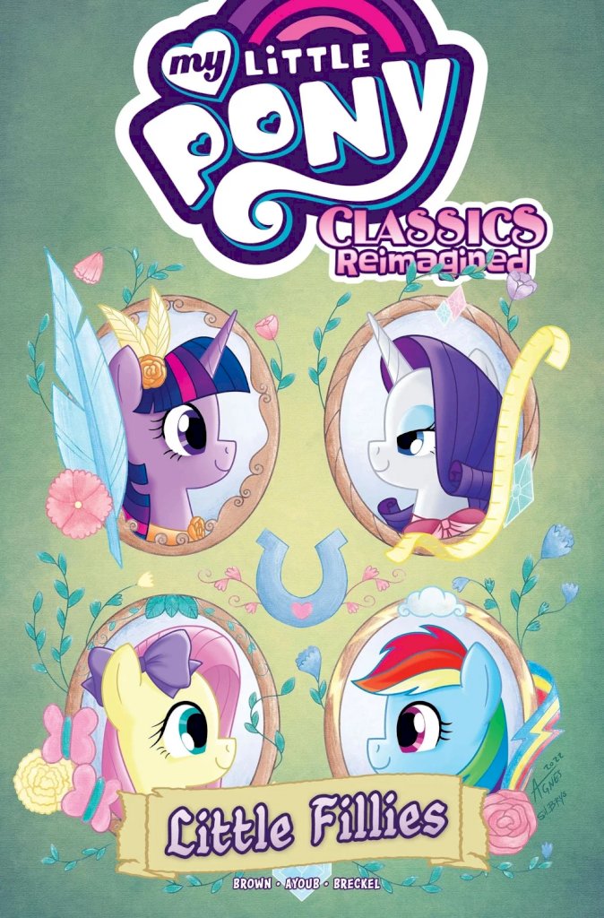 — 1. Little Fillies (2022-2023) - это арка комиксов ограниченного тиража, выпущенная IDW Publishing по лицензии Hasbro. Адаптация романа Луизы Мэй Олкотт 1868 года "Маленькие женщины", и первая из серии адаптаций литературной классики. Всего планируется 4 комикса данной арки. Главный персонаж - Рэйнбоу Дэш.
